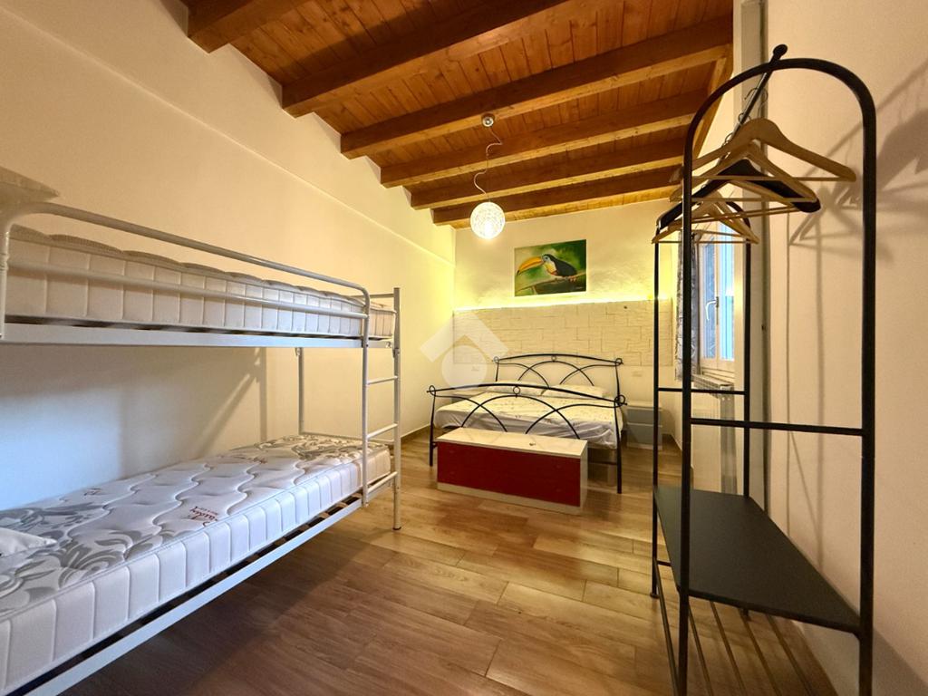 A 350 metri dalla spiaggia, proponiamo in vendita un appartamento sito al primo piano di una porzione di bifamiliare ed una dependance sita al piano terra.